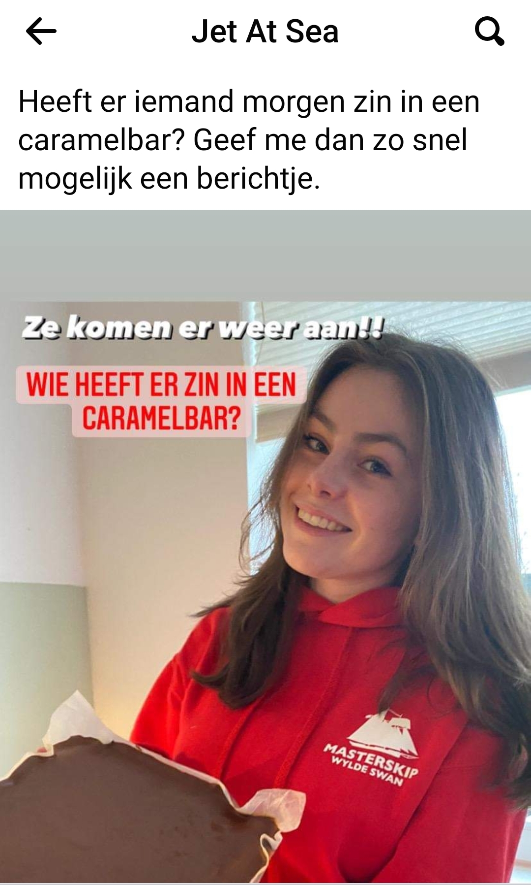Ik ga er weer voor en ben weer op zoek naar mensen die mij willen helpen om op het school-zeilreis de Wylde Swan te komen. Voor een donatie van €16,50 kom ik de caramelbar deze vrijdag (28 januari) bij u langs brengen in Maassluis/Maasland. Wie zou mij willen helpen?