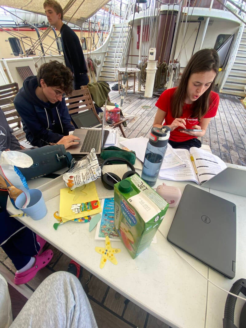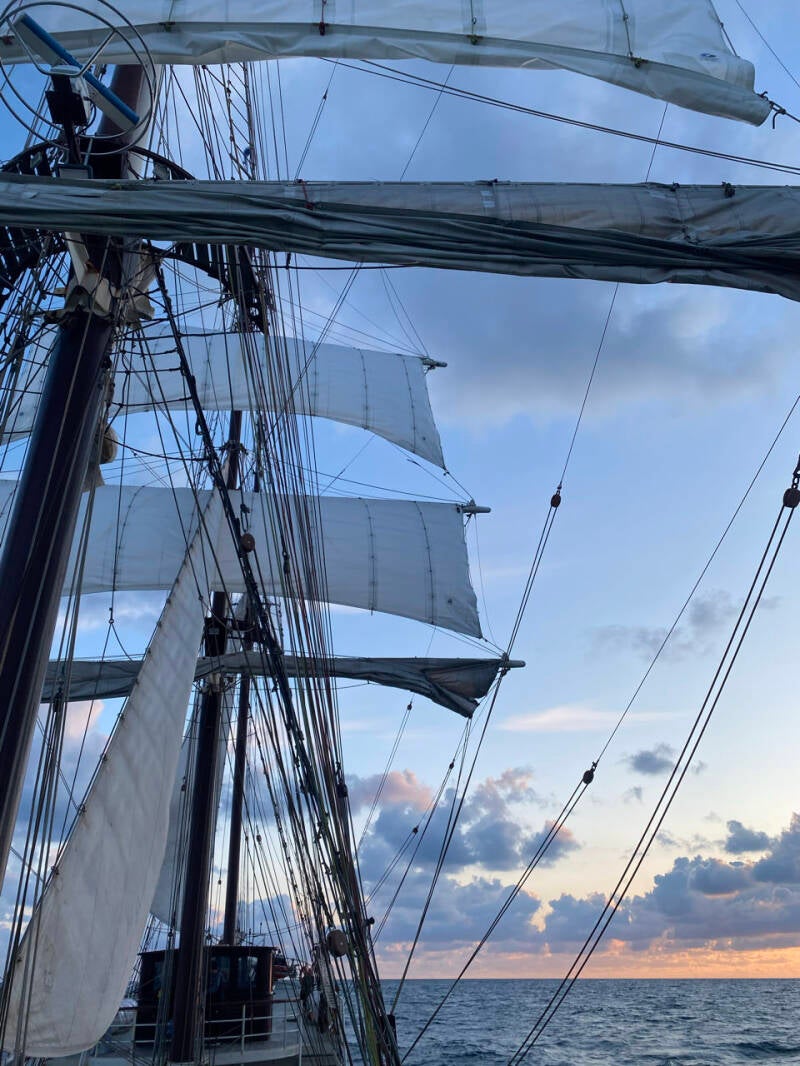 Vandaag begon de scheepsovername, 48 uur waarin de trainees de leiding hebben over het schip. We begonnen om 8 uur ‘s ochtends en ik begon toen ook. Na 2 uur wacht draaien en zeil zetten was ik maar gaan slapen want ik voelde me nogsteeds niet helemaal lekker. Ik werd rond 3 uur wakker van een paar bellen: Captain speech, vervolgens wat gegeten en weer terug me bed in. Om 6 uur werd ik weer wakker gemaakt, je wacht begint weer. Na avondeten en zeilen zetten zeiden de twee kapiteins die op dat moment in de stuur hut zaten dat ze me liever in m’n bed wilde omdat ik er niet zo lekker uitzag.