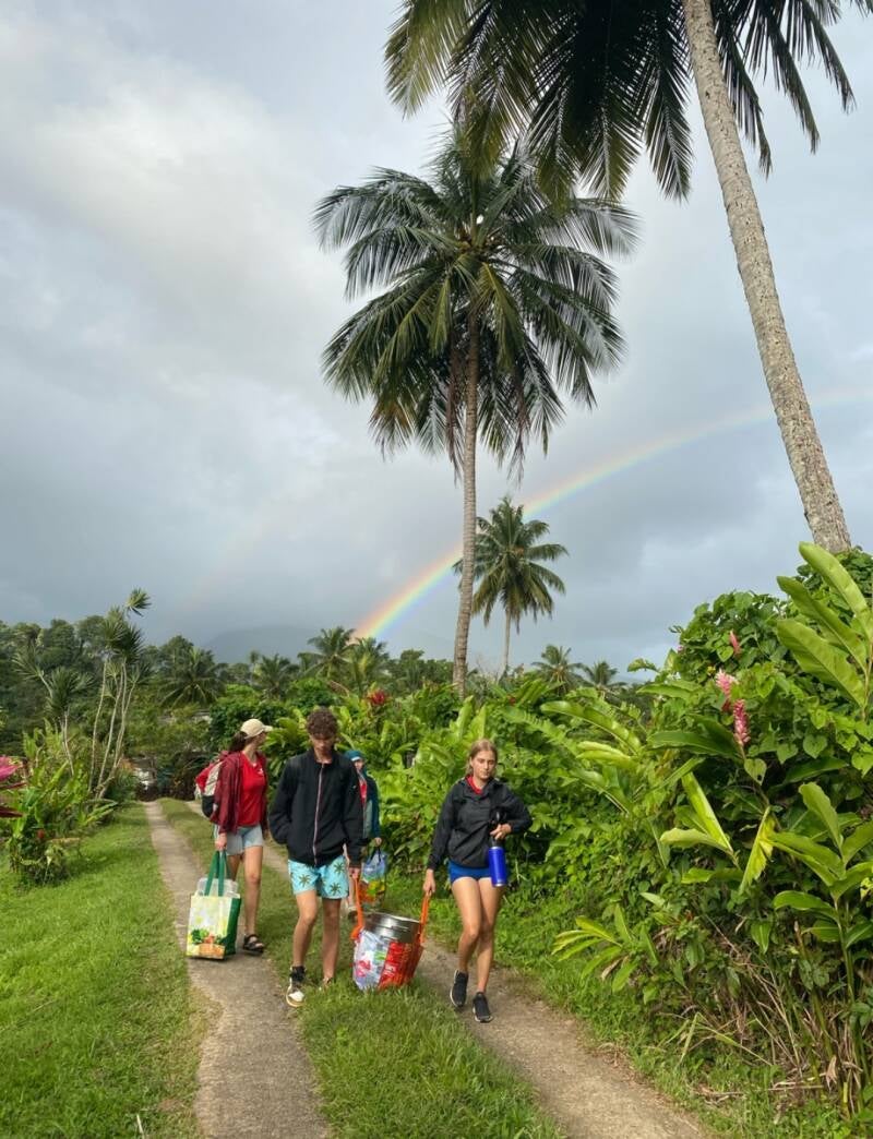 De eerste nacht gehad met mijn nieuwe roommate Lottie. Vandaag stond voor heel de dag een excursie gepland. Als eerste hadden we een vlugge stop bij een uitkijkpunt waarna we vervolgens verder gingen na het volgende punt: Een vulkaankrater. Het plan was om deze te bewandelen. Alleen vanwege de mist was dat niet zo’n handig plan. Na de vulkaan hadden we een koffiepauze bij een cafeetje die ook een supermarkt had. De supermarkt had zelfs spijkerbroeken, wat voor onze docent Jan goed uitkwam omdat hij door zijn broek was gescheurd.