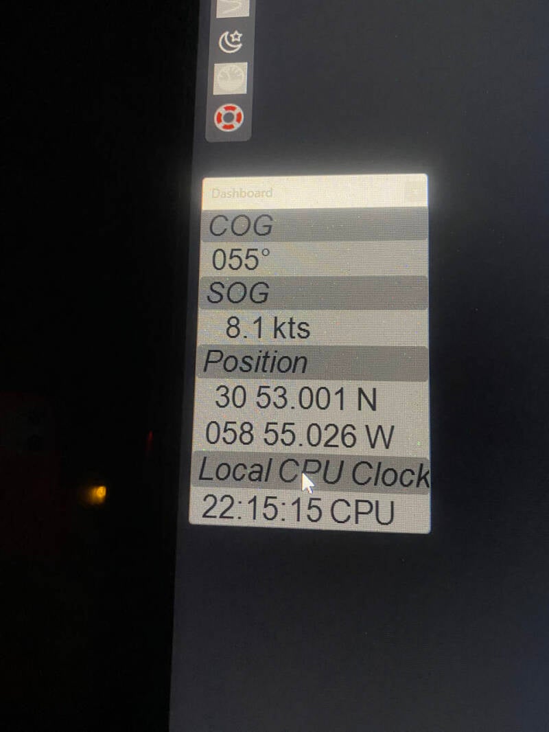Net voor 8 uur moest het deckteam haast alle lijnen strak strekken en konden we mooi opschieten. Ik voel me inmiddels al wat beter, eindelijk weer wat energie. In de avond hebben we captainsdiner gehad. Dat is een diner met de kapitein en de gehele crew. 3 gangen heeft Richard voor ons gekookt. Na elke gang hadden we een stoelenwisseling zodat we elke keer ergens anders zaten, gezellig!